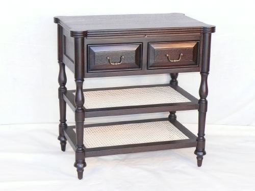 “Eric” Side Table 2 drawers, 2 shelves w/caning 30w x 20d x 30h