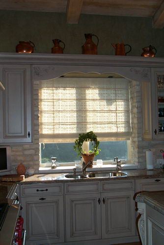 In this hilltop kitchen, we created Motorized Pleated Roman Shades for the ultimate comfort and convenience.